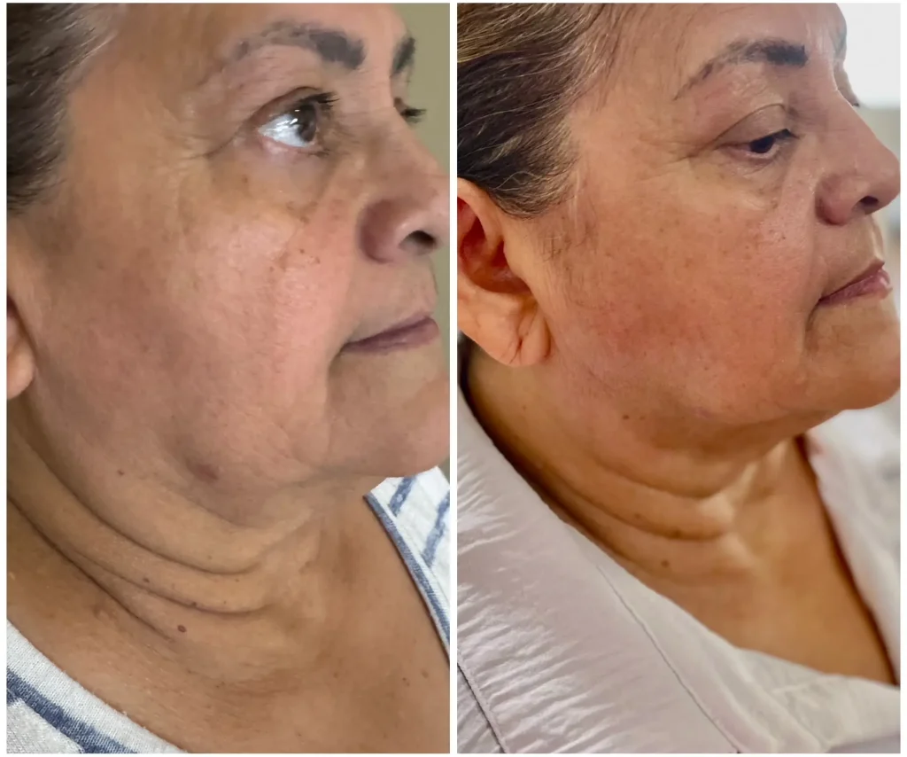 HIFU uses focused ultrasound energy to target the deep SMAS layer of your skin — the same layer treated in surgical facelifts. The energy stimulates your body’s natural collagen production, gradually lifting and tightening your skin from within.